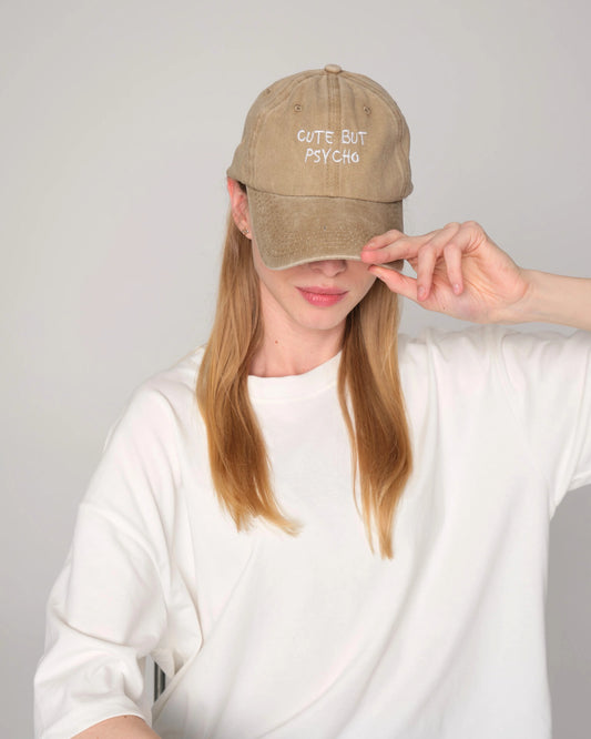 Cute But Psycho Brown Washed Cap