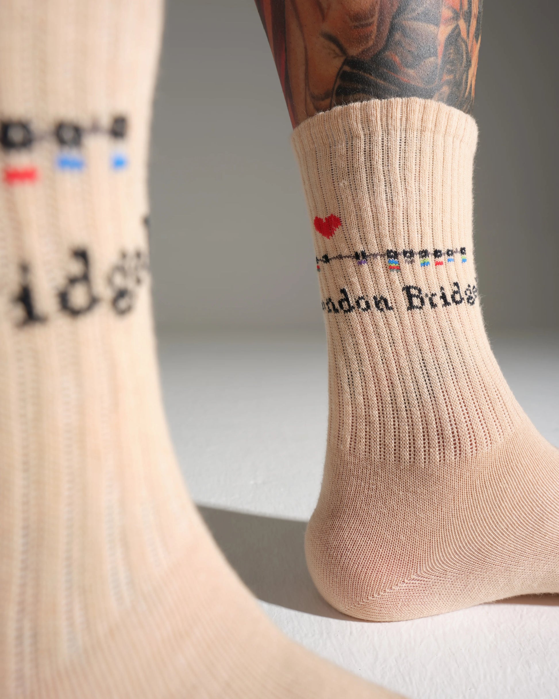 With a minimalist beige base and a cute red heart next to “London Bridge,” this design celebrates one of London’s most loved locations. They’re the perfect gift for London lovers, travellers, creatives, and anyone who enjoys socks with personality.